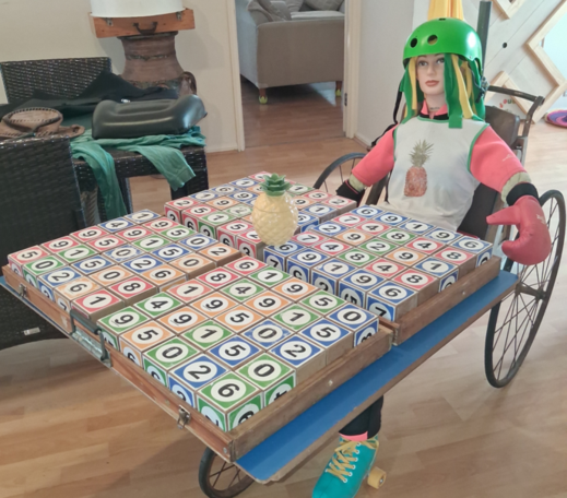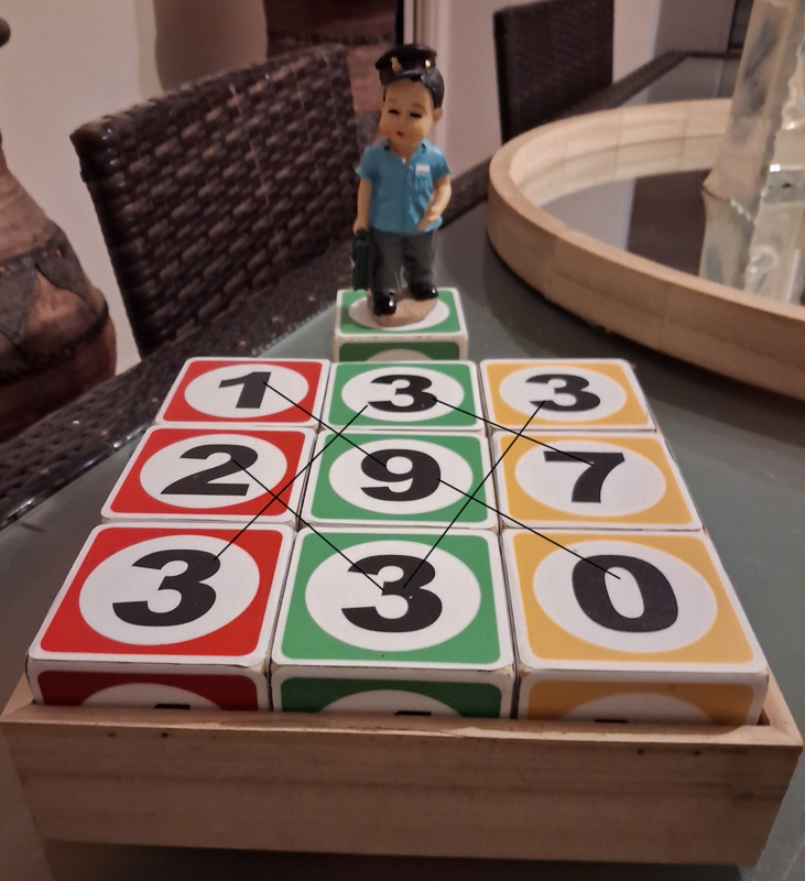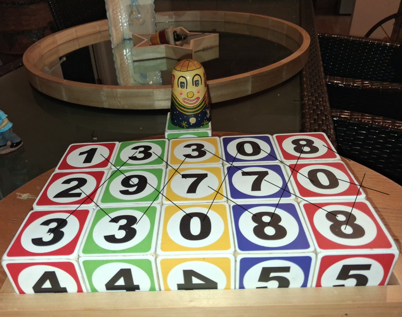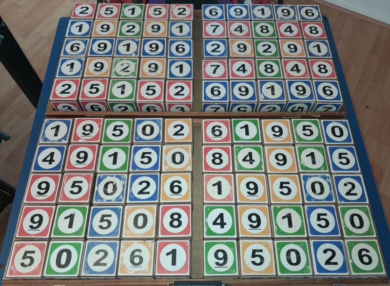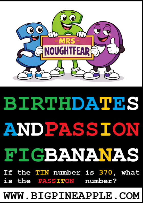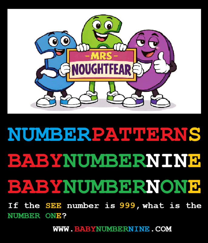 digits relating to birthdate 25 dec 1961 with digital root of 9 in middle. Babies can choose any 9 digits which are then rainbowed with help.