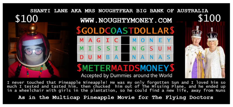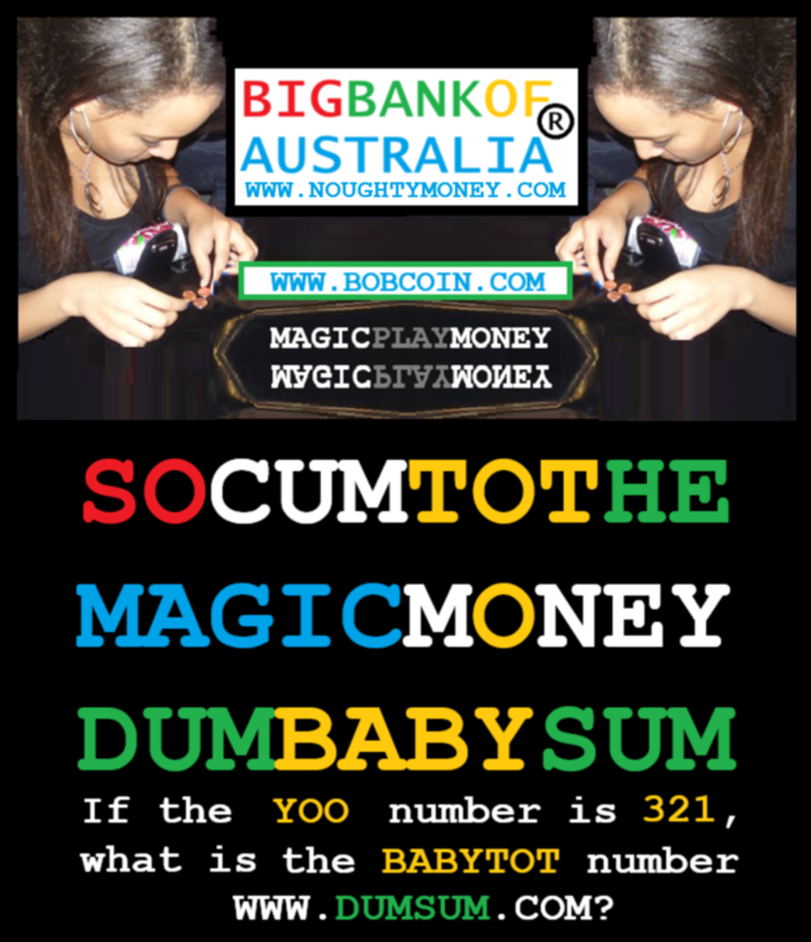 Fair Dinkum! Shanti Lane, aka Mrs Noughtfear, succeeded in registering the trademark, Big Bank of Australia, relating to Magic Play Money, and took over www.bobcoin.com and www.noughtymoney.com.. She is donating her secret ways